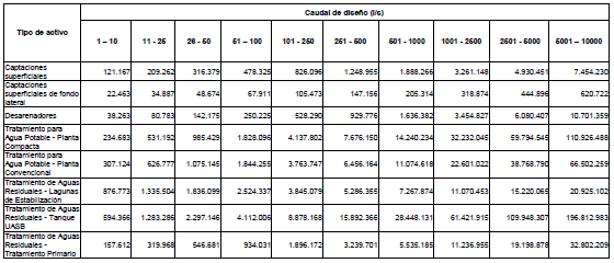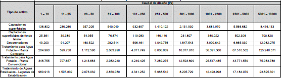 49 Los rangos de costos se definieron en el documento “ESQUEMA DE REVISIÓN TÉCNICA DE SOLICITUDES DE VALORACIÓN DE ACTIVOS (VA)”, elaborado por la CRA y discutido en la Sesión de Comisión No 167 del 21 de diciembre de 2010.