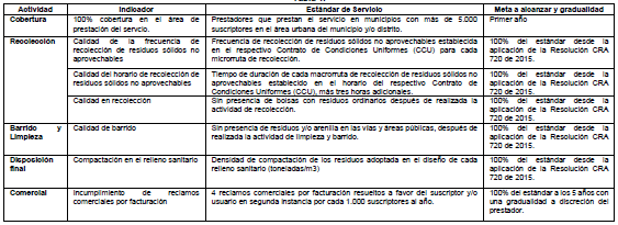 53 Resolución CRA 720 de 2015 por la cual se establece el régimen de regulación tarifaria al que deben someterse las personas prestadoras del servicio público de aseo que atiendan en municipios de más de 5.000 suscriptores en áreas urbanas, la metodología que deben utilizar para el cálculo de las tarifas del servicio público de aseo y se dictan otras disposiciones”.