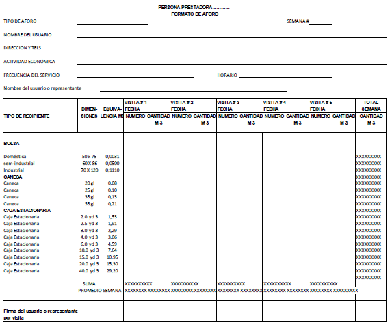 Nota: El numeral 4 del Artículo 2.3.2.1.1. del Decreto 1077 de 2015 contiene una definición de “aforo permanente de aseo”.