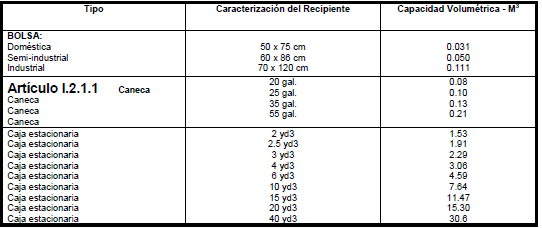 6.3.5.1 Tabla de equivalencias de las diversas formas de presentación de los residuos.