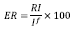 | FÓRMULA | Para el cálculo del Indicador se aplicará la siguiente fórmula: Donde ER: Eficiencia en el Recaudo, redondeado a dos (2) cifras decimales. RI: Recaudo en el período de evaluación por prestación de los servicios públicos domiciliarios de acueducto y/o alcantarillado. Los valores recaudados no deben incluir el recaudo de cartera de años anteriores, ni los correspondientes a actividades diferentes a la prestación de dichos servicios. If; Ingresos facturados por prestación de los servicios públicos de acueducto y/o alcantarillado del período a evaluar. Para el cálculo de los Ingresos se deberán tener en cuenta también los correspondientes a los facturados a los municipios con el fin de cubrir los costos de prestación.Para pequeños prestadores y prestadores rurales, si el recaudo del periodo de evaluación no se lleva en una cuenta discriminada, el cálculo del Rl corresponderá a los Ingresos facturados por prestación de los servicios públicos de acueducto y/o alcantarillado menos la variación entre el saldo de la cartera del año evaluado y el del año anterior. |