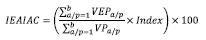 | FÓRMULA | Para el cálculo del indicador se aplicará la siguiente fórmula: Donde: IEAIAL: índice de Ejecución Anual de Inversiones de Alcantarillado, redondeado a dos (2) cifras decimales. a/p: Activos y/o proyectos estipulados dentro del plan de inversiones del prestador o POIR,para el servicio público domiciliario de alcantarillado, donde a/p = {1,2,3 b}. VEPa/p: Valor (en pesos corrientes) del activo y/o proyecto "a/p" ejecutado establecido dentro del plan de inversiones o POIR del prestador para el servicio público domiciliario de alcantarillado durante el período de evaluación del indicador. Corresponden a activos y/o proyectos ejecutados aquellos que se encuentren "en operación". VPa/p: Valor (en pesos corrientes) de los proyectos y/o activos 'a/p'establecidos en el plan deInversiones del prestador para el servicio público domiciliarlo de alcantarillado. Lo anterior, debe corresponder al período tarifario que finaliza en el período de evaluación del indicador. Index: Factor de indexación de los pesos de diciembre del año base a pesos del año deevaluación, el cual se obtiene de dividir el IPC de junio del año de evaluación y el IPC de diciembre del año base que le corresponda al prestador de acuerdo con el marco regulatorio aplicado, teniendo presente que para ambos índices se emplee la misma base del IPC, establecida por el DAÑE. Para la aplicación de esta fórmula se debe tener en cuenta los siguientes aspectos: - Para el caso de los grandes prestadores, se debe utilizar el POIR actualizado de que trata el parágrafo 1 del artículo 109 de la Resolución CRA 688 de 2014, modificado por el artículo 1o de la Resolución CRA 938 de 2020. Para el caso de pequeños prestadores se tendrá en consideración el plan o valor de inversiones definido de acuerdo con las Resoluciones CRA 825 de 2017, CRA 864 de 2018 y CRA 939 de 2021. - Si la persona prestadora ha proyectado un plan de inversiones y no ha reportado ejecución de este, el indicador será calificado como cero (0). - El indicador es aplicable a prestadores que empleen una fórmula tarifaria contractual en los términos del parágrafo 1 del artículo 87 de la Ley 142 de 1994, lo anterior, de acuerdo con el alcance de lo previsto en el contrato |