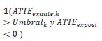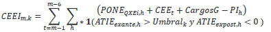![]() | Función indicadora que toma un valor de 1 si se observa un error de exclusión. Este error aparece cuando no se activa la TIE ex ante, es decir, es menor al umbral k, pero al calcular la relación de activación de la TIE ex post se encuentra que es mayor que 0. |