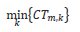 | Valor mínimo de la función de costo total estimado de los errores en el mes m |