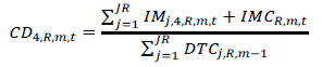 Ingreso mensual del OR j, en el nivel de tensión 4, en el mes m del año t, calculado según lo establecido en el numeral 2.1.