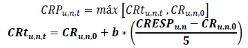b: Variable que representa el año de aplicación a partir de la entrada en vigencia de los ingresos aprobados al OR con base en la presente resolución, variando a partir de uno en el primer año y hasta cinco (5).