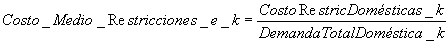 CostoResticDomésticas_k: Costo de las Restricciones para el período k, para la demanda total doméstica, calculado con el procedimiento descrito para Costo_Medio_Restricciones_k (Anexo 3).