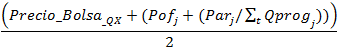 | Qj: | Generación programada para el recurso j en el Despacho Programado |