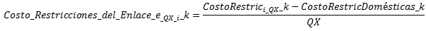 CostoRestic_i_QX_k: Costo de las Restricciones considerando una TIE de exportación QX por el enlace i.