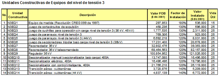 NNRj,3: Número total de unidades constructivas del Nivel de Tensión 3, reportados por el OR j. No se deben considerar activos las unidades constructivas asociadas con líneas "normalmente abiertas", o con activos que usualmente no son utilizados en la prestación del servicio.