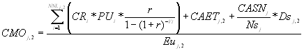 Este Cargo Máximo Eficiente se calcula de manera análoga al procedimiento descrito en el numeral 1.2 de este Anexo, pero utilizando los Costos Medios de activos diferentes a líneas urbanas y rurales de Nivel de Tensión 2 de cada OR (CMOj,2), estimados así: