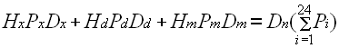 Sean Hx, Hd, y Hm el número de horas asociadas con cada uno de los períodos horarios, determinados por los OR, de acuerdo con el punto 2 del procedimiento establecido.