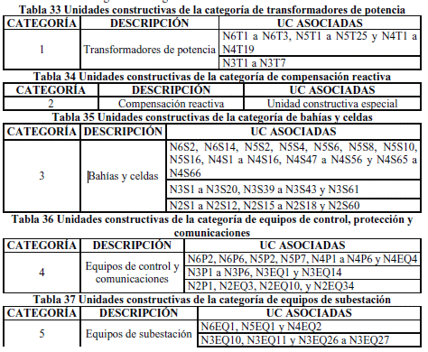 Tabla 66 Unidades constructivas de la categoría de equipos de subestación