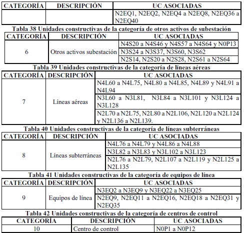 Tabla 67 Unidades constructivas de la categoría de otros activos de subestación