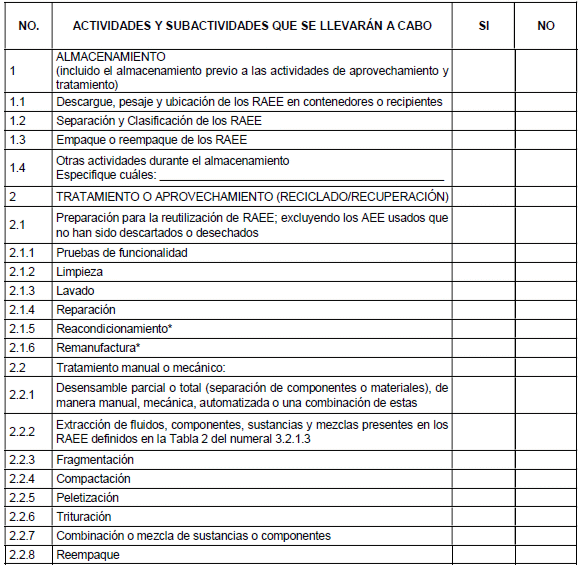 1.2.1.4 Procesos y operaciones y tecnología a implementar en la gestión de los RAEE.