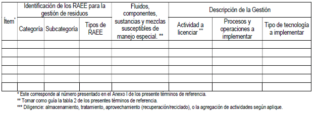 2. En caso que se identifiquen AEE diferentes a los relacionados en la tabla, éstos se deben incorporar junto con su respectiva descripción técnica.