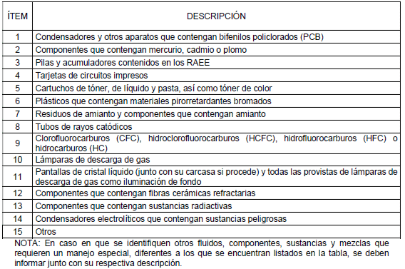 1.2.1.3 Sustancias, mezclas y componentes presentes en los RAEE que requieran un manejo especial.