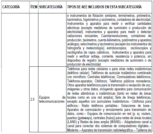 1.2.1.2 Clasificación de los AEE para efectos de la gestión de sus residuos.