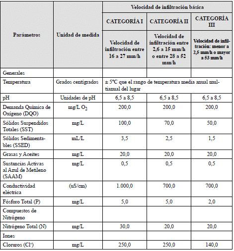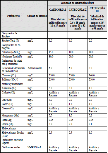 En caso que el régimen de humedad sea Ácuico o Perácuico y/o el orden taxonómico sea Histosol, Andisol o Molisol, independiente del valor de la velocidad de infiltración básica, se aplicará la Categoría III, para el área de disposición del vertimiento en el suelo de ARD-T.