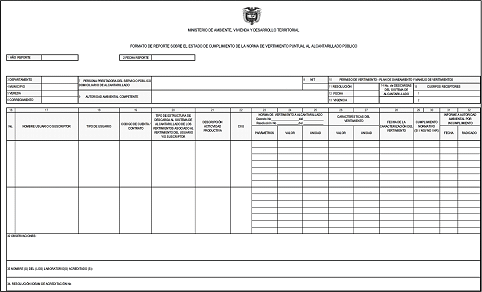 Que corresponde al Ministerio de Ambiente, Vivienda y Desarrollo Territorial, de conformidad con lo dispuesto en el parágrafo del artículo 39 del Decreto 3930 de 2010, adoptar el formato de reporte del cumplimiento de la norma de vertimiento al alcantarillado público.