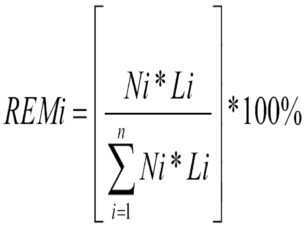 | REMi: | Porcentaje de Responsabilidad de cada Empresa Minera, en la humectación de la vía del carbón en un período en particular. |