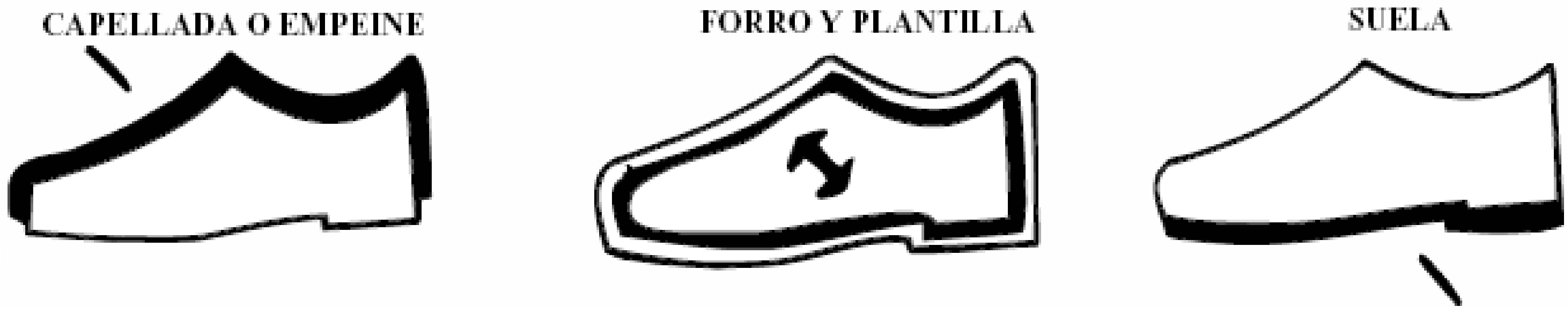 Capellada. Pieza o conjunto de piezas que forman la parte exterior del corte y que constituye el elemento estructural que va unido a la suela.