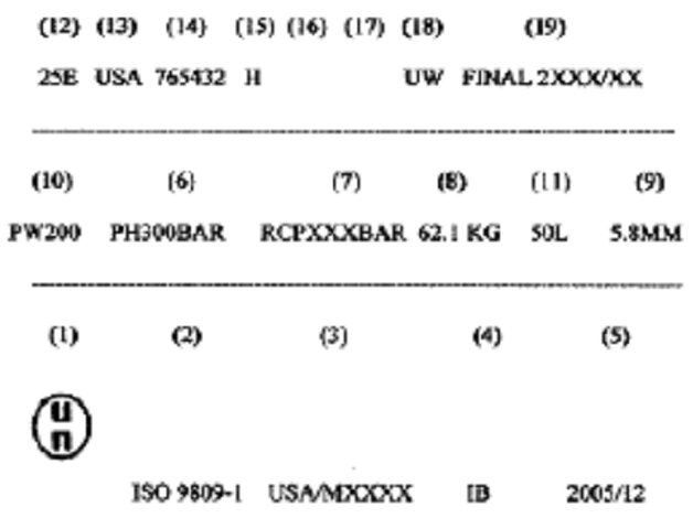 18. Estampe para uso bajo el agua de cilindros compuestos, si ello es aplicable. (Este requisito no es exigido por el presente reglamento técnico).