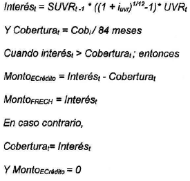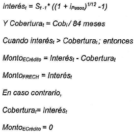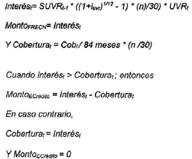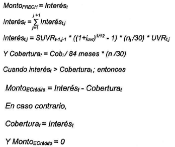 De forma análoga, para calcular el monto a certificar, reconocer y entregar por parte del establecimiento de crédito para los créditos de vivienda o contratos de leasing habitacional denominados en pesos, las ecuaciones aplicables son las siguientes: