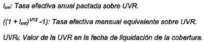UVRi: Valor de la UVR en la fecha de liquidación de la cobertura.