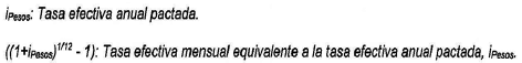 ((1 + ípesos)1/2-1) Tasa efectiva mensual equivalente.