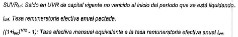(1+iuvr)1/2-1): Tasa efectiva mensual equivalente a la tasa remuneratoria efectiva anual i„.