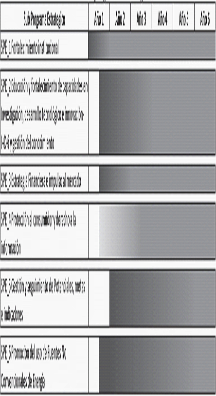 ARTÍCULO 4o. <Resolución derogada por el artículo 11 de la Resolución 41286 de 2016> <Ver prórrogas en Notas de Vigencia> Definir los siguientes Subprogramas estratégicos de carácter transversal del Plan de Acción Indicativo 2010-2015 del Programa de Uso Racional y Eficiente de la Energía y demás Formas de Energía No Convencionales, PROURE: