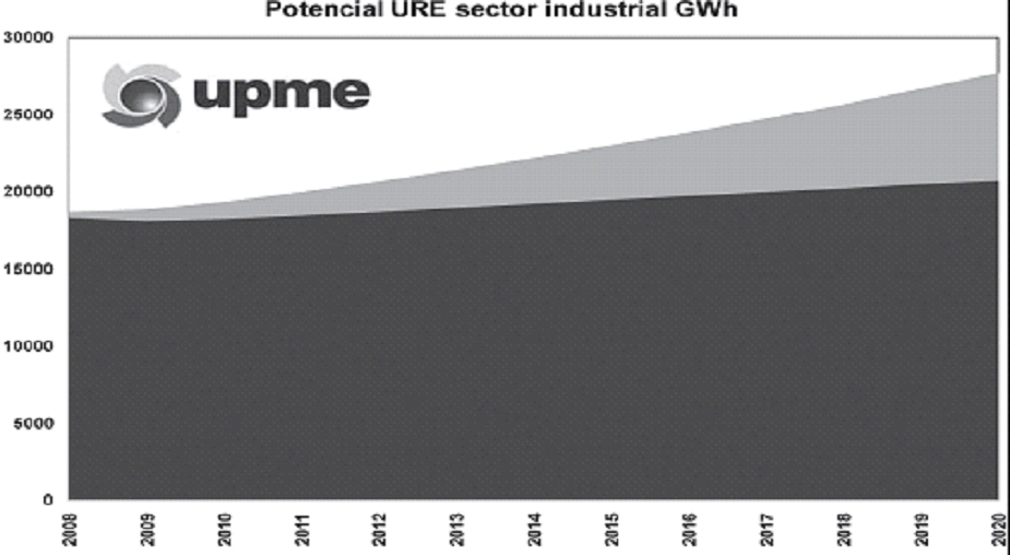 * Potencial de ahorro de energía eléctrica estimado por la UPME.