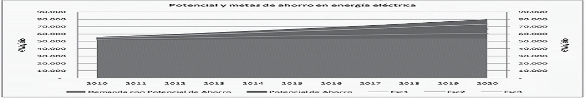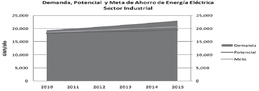 | Sector | Potencial de ahorro de energía a 2015 (%)* | Meta de ahorro de energía a 2015 (%) | ||