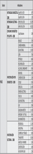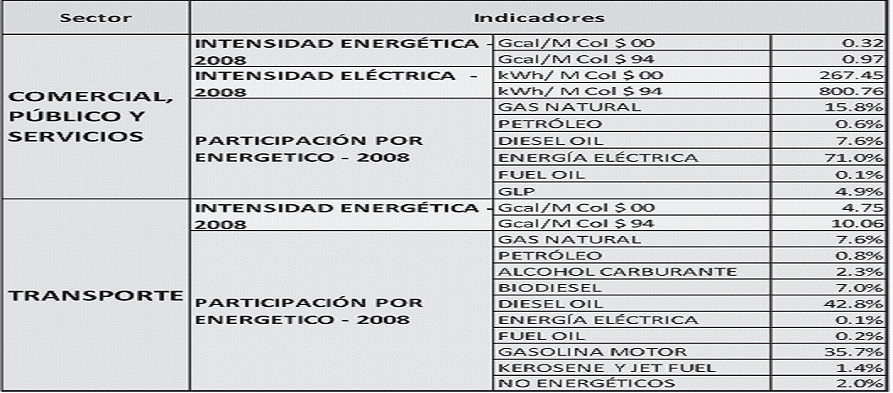 10 La intensidad eléctrica es un indicador que proporciona una idea del consumo de energía eléctrica en el sector en función del PIB. Para Colombia a 2008 este indicador es de 349,13 kWh/M Col$ 00.