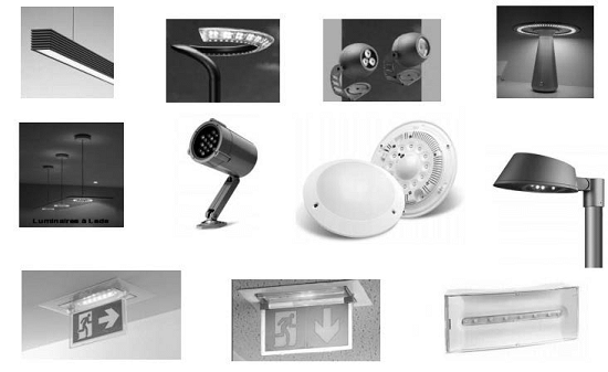 Ejemplos de luminarias LED. Gráfica tomada de “Joint CELMA / ELC Guide on LED related standards. 3rd Edition, July 2011”.