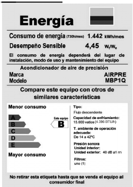Figura 8.5 a. Ejemplo de etiqueta para Acondicionadores de Aire de Precisión”.