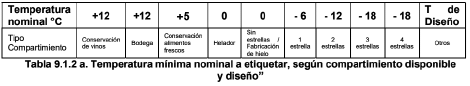 6) Al numeral 9.1.2, correspondiente a información comparable establecida para etiquetar equipos de refrigeración doméstica, la temperatura nominal del compartimiento más frío disponible de acuerdo con referente internacional, quedando como sigue: