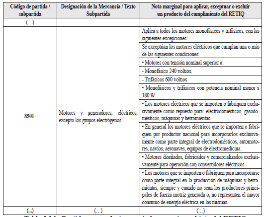 - Acondicionadores de aire: Tipo de equipo declarado (Según numerales 7.2 o 8.2), tecnología de control/operación de la capacidad del equipo (Fija, dos etapas, multietapa, variable), y rango de capacidad de enfriamiento en vatios, según tabla siguiente: