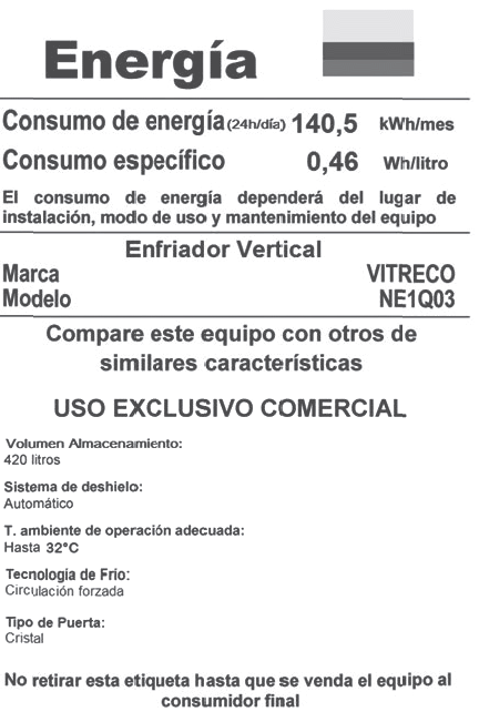 La etiqueta deberá incluir en el espacio dispuesto para información comparable, la siguiente: