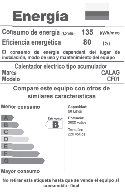 Figura 14.5. Ejemplo de etiqueta para Calentadores de Agua Eléctricos