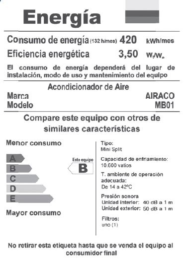 Para cada categoría de equipo se deberá declarar en la etiqueta la clase energética (rango) al que corresponda, de las establecidas en las Tablas 16.3.1.1 a., y 16.3.1.1 b.