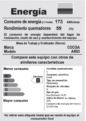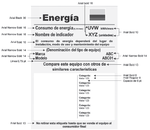 Que los datos contenidos en el etiquetado suministrados por los productores de equipos de uso final de energía eléctrica y gas combustible objeto del presente Reglamento Técnico, se consideran información mínima necesaria para el usuario o consumidor de tales productos.