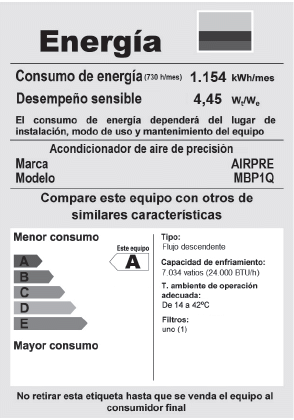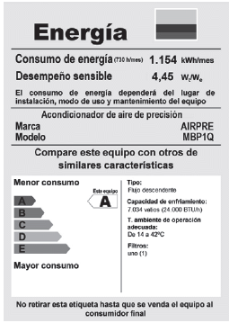 | Acondicionadores de aire del tipo precisión con capacidad de enfriamiento inferior o igual a 17.580 W. | |