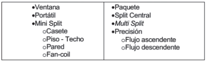 | 8415.10.10.00 8415.10.90.00 8415.82.20.00 8415.82.30.00 8415.82.40.00 | Máquinas y aparatos para acondicionamiento de aire que comprendan un ventilador con motor y los dispositivos adecuados para modificar la temperatura y la humedad, aunque no regulen separadamente el grado higrométrico. | Aplica a: Acondicionadores de aire con capacidades de enfriamiento inferiores a 10.540 W, alimentados con energía eléctrica. Acondicionadores de aire con capacidades de enfriamiento desde 10.540 W hasta 17.580 W, alimentados con energía eléctrica. Unidades Evaporadoras (interiores) y Condensadoras (exteriores) de los anteriores. Acondicionadores de aire tipo precisión hasta 17.580 W de capacidad de enfriamiento, incluidos o no en gabinetes o tableros. No aplica: Cuando se fabriquen o importen para incorporarlos como parte integral de automotores, navíos, aeronaves u otros aparatos, máquinas y herramientas. No aplica cuando estén diseñados exclusivamente para recintos en donde se alojen equipos especializados de electromedicina para prestación de servicios médicos o de cirugía. Acondicionadores de aire portátiles con capacidades de enfriamiento iguales o inferiores a 1.000 W. |