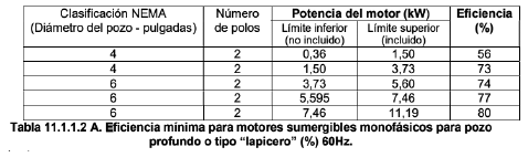 | 8501- | Motores y generadores, eléctricos, excepto los grupos electrógenos | Aplica a todos los motores monofásicos y trifásicos, incluidos los de doble bobinado tipo “Dahlander”, así como los acoplados a equipos y máquinas motrices tales como bombas, motorreductores, motoventiladores y compresores, con las siguientes excepciones: Se exceptúan los motores eléctricos que cumplan una o más de las siguientes condiciones: Motores con tensión nominal superior a: Monofásico 240 voltios. Trifásicos 600 voltios Monofásicos y trifásicos con potencia nominal menor a 180 W. Los motores eléctricos que se importen o fabriquen exclusivamente como repuesto para: electrodomésticos, gasodomésticos, máquinas y herramientas. En general los motores eléctricos que se importen o fabriquen por productor nacional para incorporarlos exclusivamente como parte integral de electrodomésticos, automotores, navíos, aeronaves, equipos de electromedicina. Motores diseñados, fabricados y comercializados exclusivamente para operación con convertidores eléctricos. |