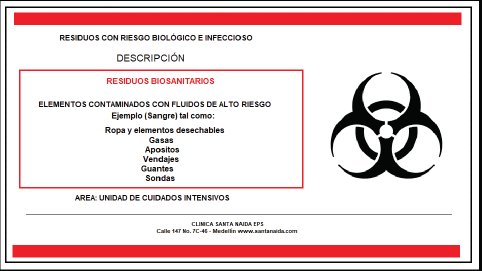 3.2 Etiqueta: En la gestión interna de residuos corresponde a la información escrita, impresa o gráfica relativa a un residuo en particular, que se adhiere o se imprime en el recipiente, embalaje o envase que contienen los residuos.