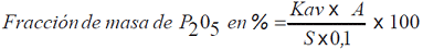 El porcentaje de fosfato expresado como P205 se calcula de la siguiente manera: