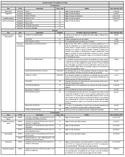 Que con el propósito de brindar mayor claridad a los actores del sistema de salud, respecto al contenido y valor de las tarifas definidas para los servicios de Unidad de Cuidado Intensivo y de Unidad de Cuidado Intermedio, se incluye un anexo técnico con el listado y detalle de los procedimientos, medicamentos e insumos de cada uno de los servicios.