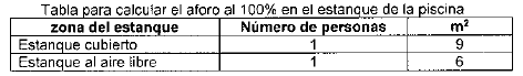 3.2.1. El aforo de cada estanque se indicará en un cartel junto al mismo.
